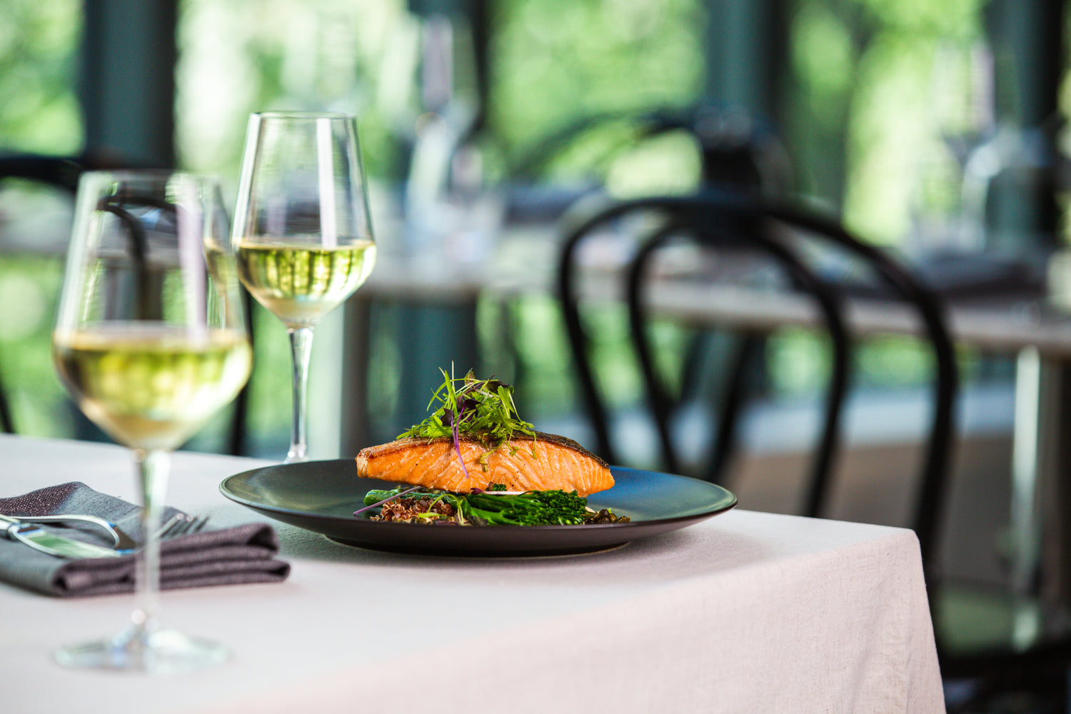 Tasmanian salmon, roasted kumara, Jerusalem artichoke, samphire, olive & hazelnut vinaigrette